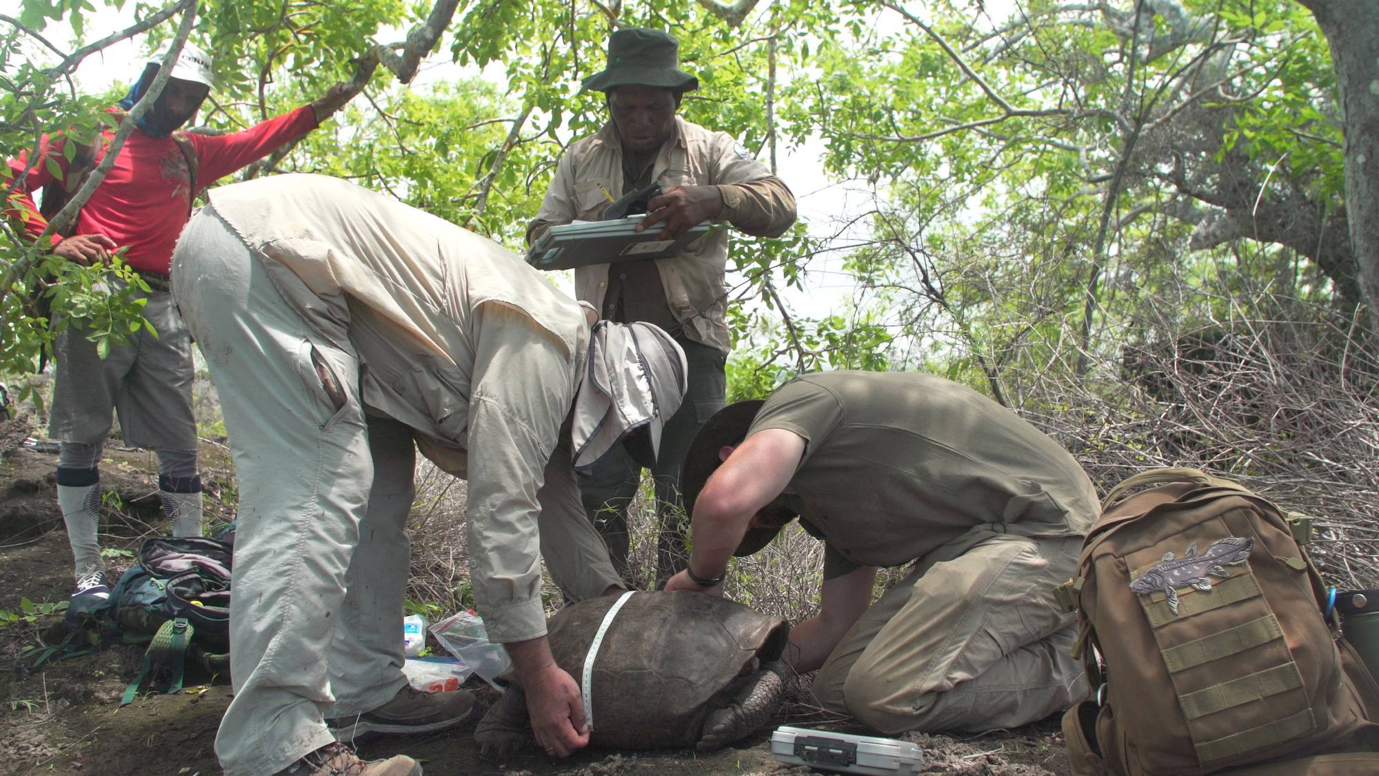 Host and leading biologist, Forrest Galante always believed the Fernandina Tortoise may still exist and on February 17th 2019, after 2 days of surveying, his team, including a Galapagos National Park Ranger (Jeffery Malaga) and the Director of the Galapagos Conservancy (Washington Tapia), crossed a three mile stretch of hardened lava flow to arrive at an area identified the previous day as potential habitat that could support a population of Fernandina tortoise.