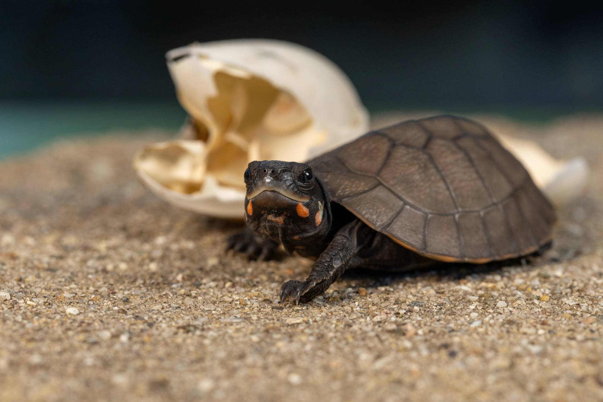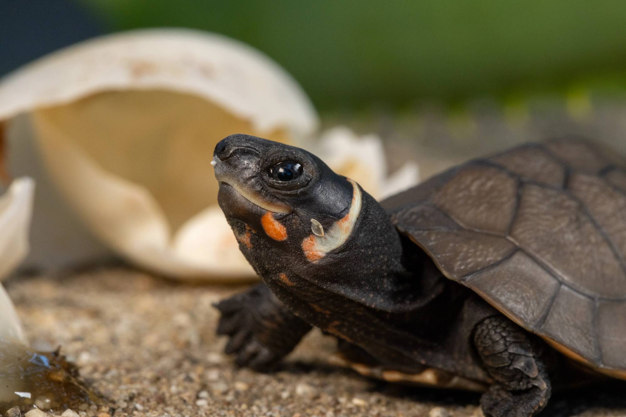 With so much of this species’ future at risk, externally managed assurance populations are critical to its long-term survival. Turtle Conservancy is proud to celebrate the first successful hatch of this species outside of its native range. We can’t stop admiring its slate-blue eyes and striking orange markings—stay tuned as this hatchling begins its journey to adulthood.