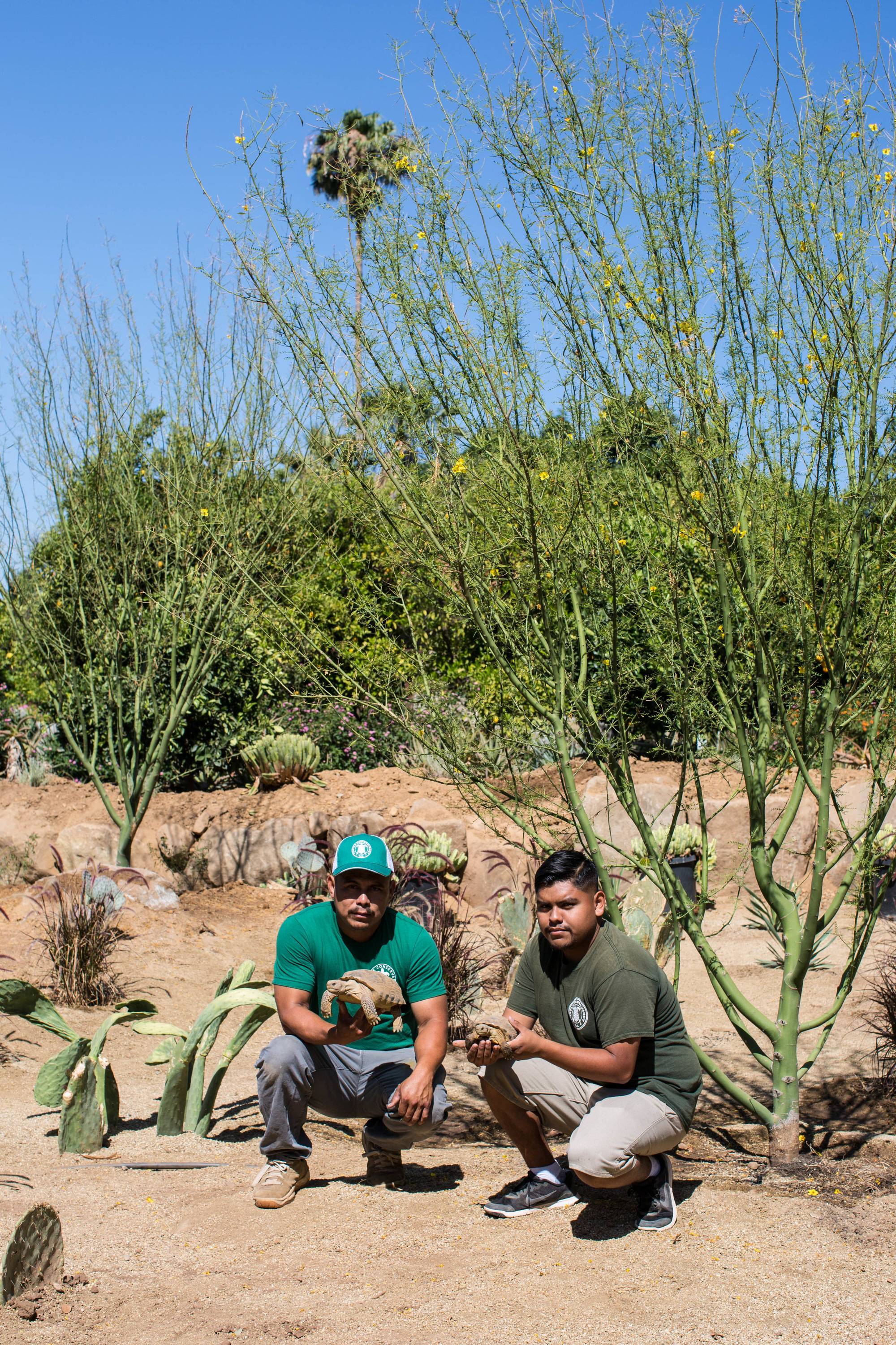 PHOTO CAPTION: Armando Jimenez and Angel Reyes with two young Bolson Tortoises.