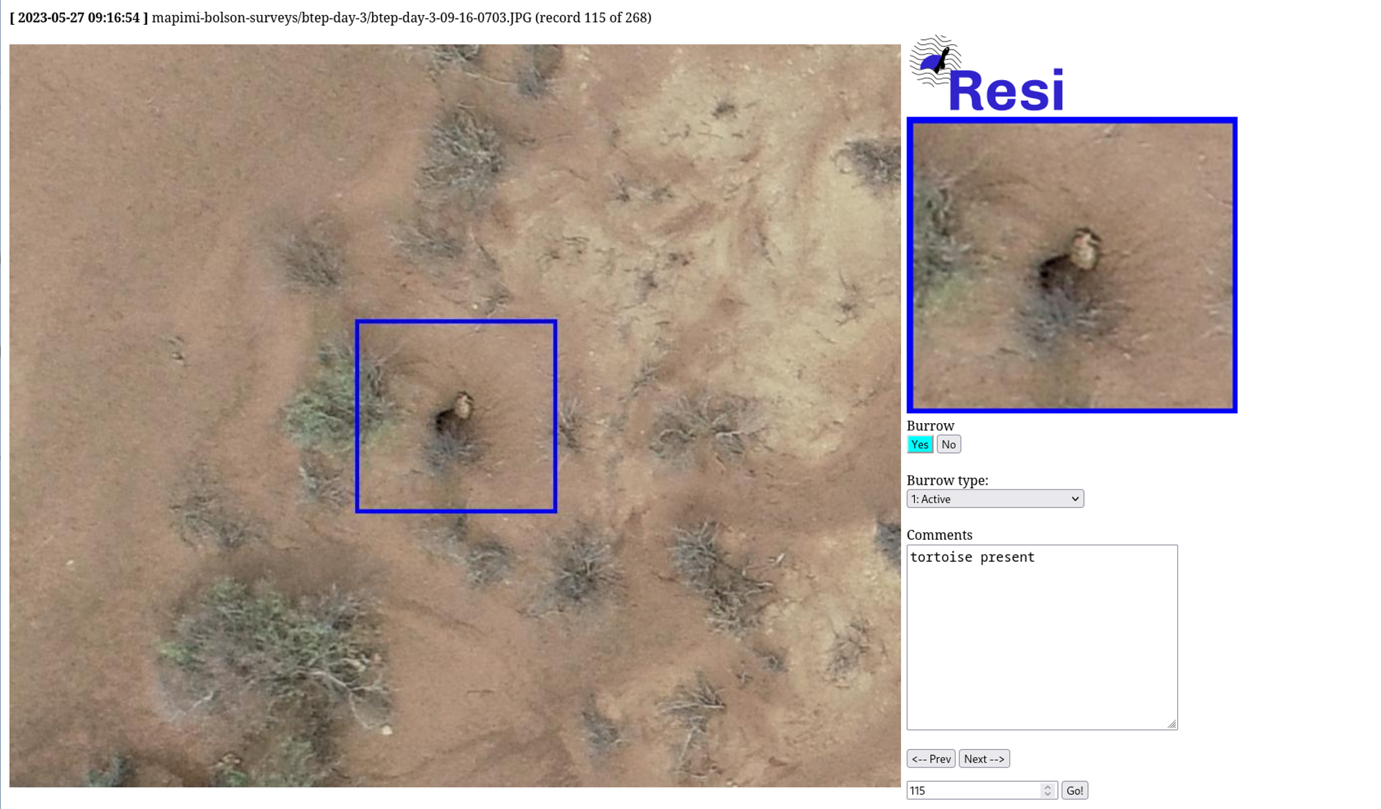 Before heading to Mexico, we conducted preliminary flights at Ted Turner's Ranch in New Mexico, which also houses a Bolson Tortoise population. This allowed us to optimize the drone's altitude to 50 meters, striking the right balance between detectability and the number of photos needed to cover a given area. Leveraging the images from this test location, Matt developed two AI models—one for identifying burrows and another for recognizing tortoises. These models built upon his previous work with Desert Tortoises and their burrows.