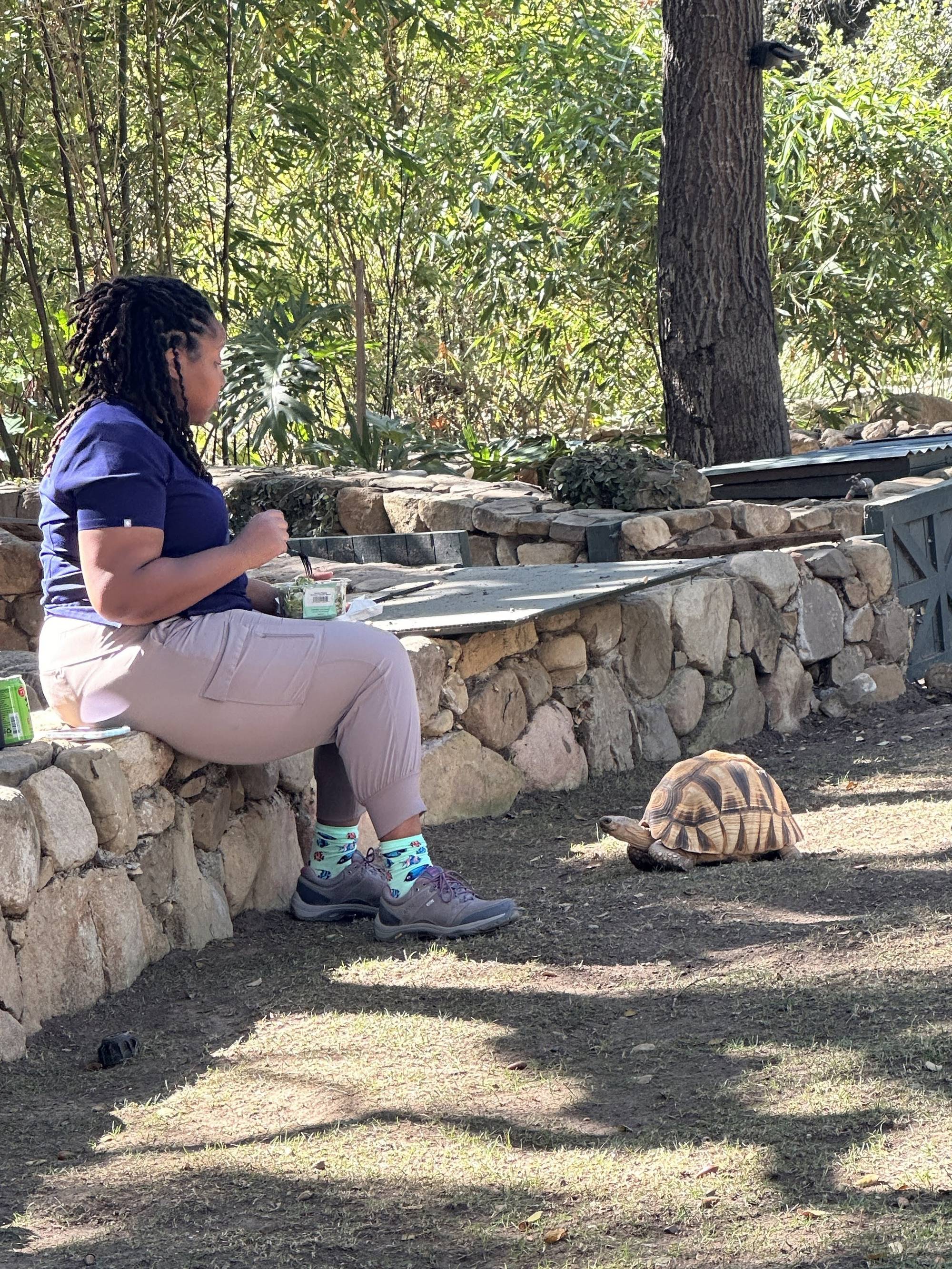 TC director, Dr. James Liu, educates on tortoise health with the help of a radiated tortoise (Astrochelys radiata)